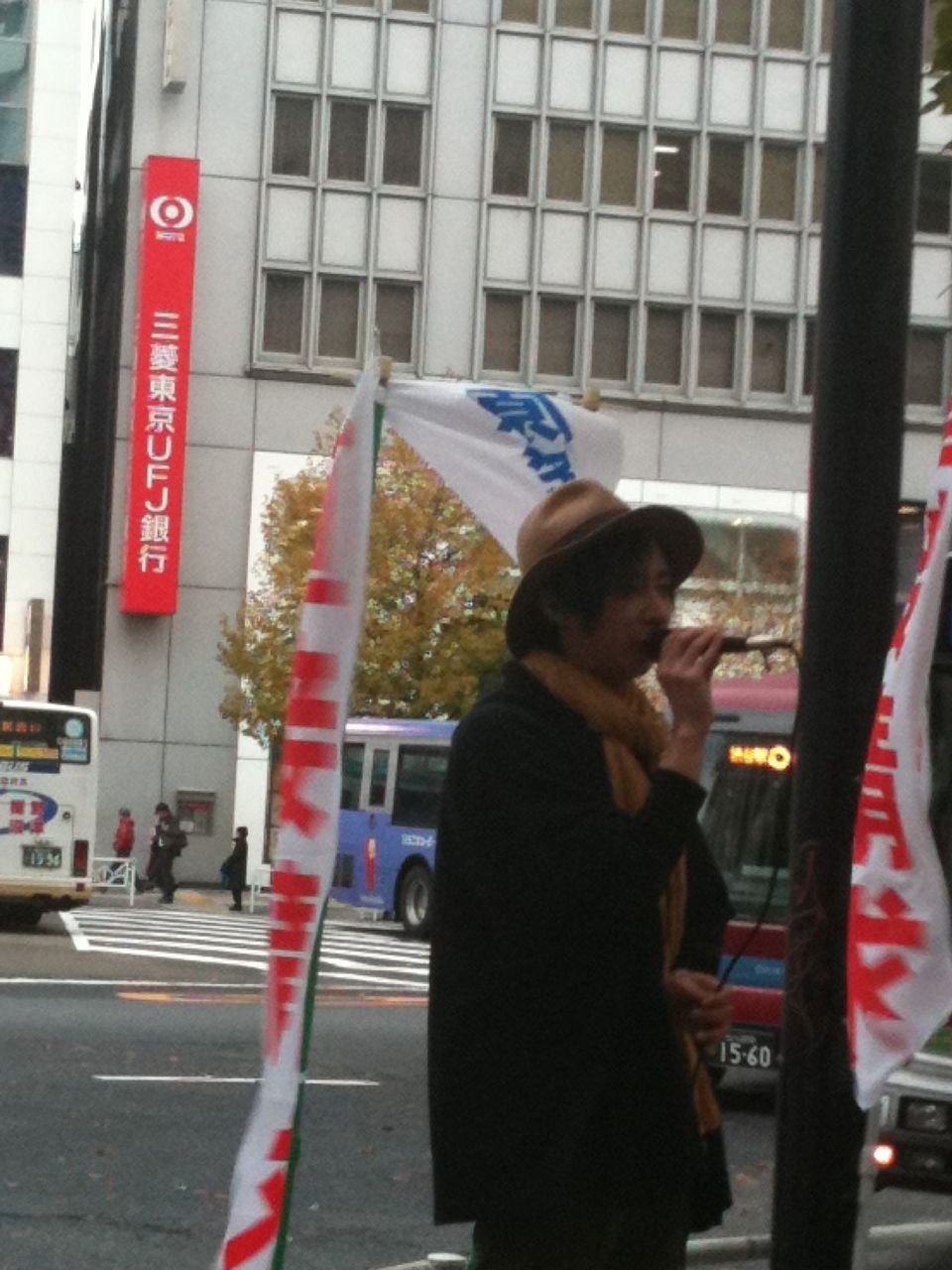 いしださんは寒空の下、必死にうったえていました。