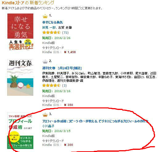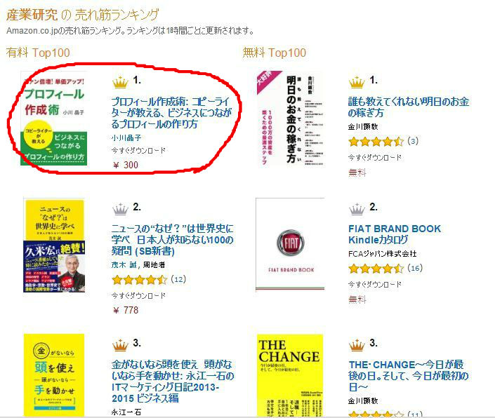 昨日発売したkindle本『プロフィール作成術』ですが、たくさんの方に応援いただいて、カテゴリ別のランキングで1位になることができました(*´∇`*)