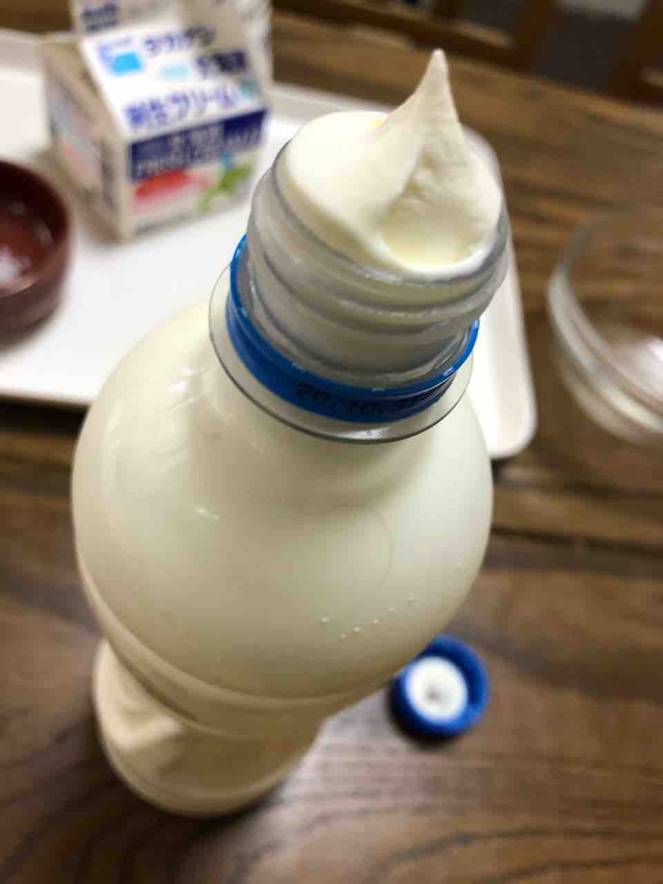 最初はホイップクリーム状になって、シャカシャカ振りにくいなー、重いなーって思う。