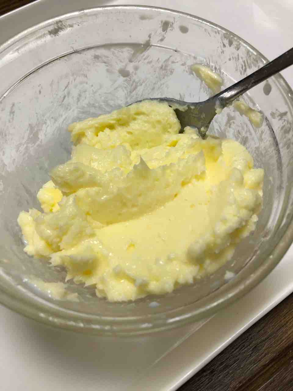 塩をひとつまみ(5グラム)混ぜて、自家製バターの出来上がり。