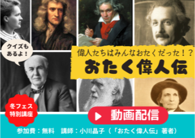 5月刊行予定の『オタク偉人伝』の中から、ファーブルやダーウィン、ガリレオなど人気の高い偉人たちの子ども時代を紹介した授業「オタク偉人伝〜偉人たちが子ども時代にハマったものの話」は5月1日と6日に予定されています。