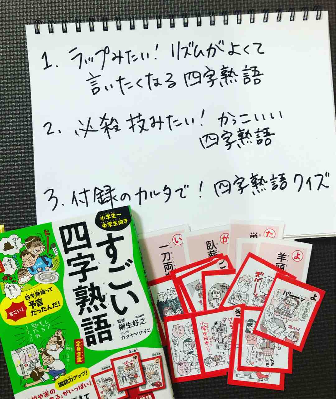 アウトカメラでやる場合、モニターが必要だが、タイムラグがあるためやはり難しい昨日の『すごい四字熟語』も、四字熟語をスケッチブックに書いて見せながらやりたいので、左右反転をどうするか、、と考えた結果、もうアウトカメラでやるしかないと。
