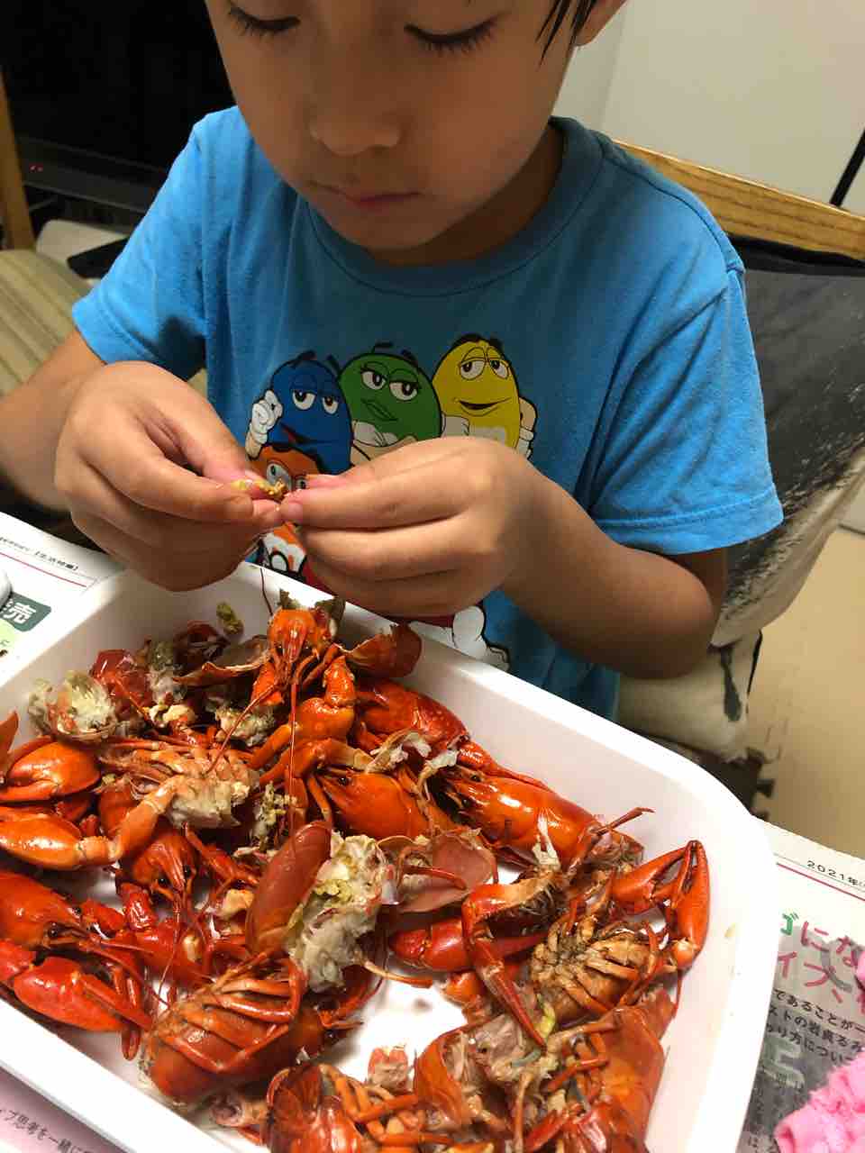 ザリガニをむくのが相当上手くなっていました。
