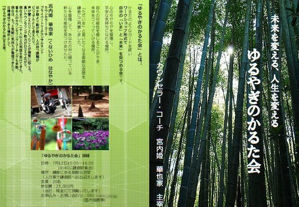はなやか姫のワークショップ「ゆるやぎのかるた会」のチラシです。(定員を増やしたそうです)